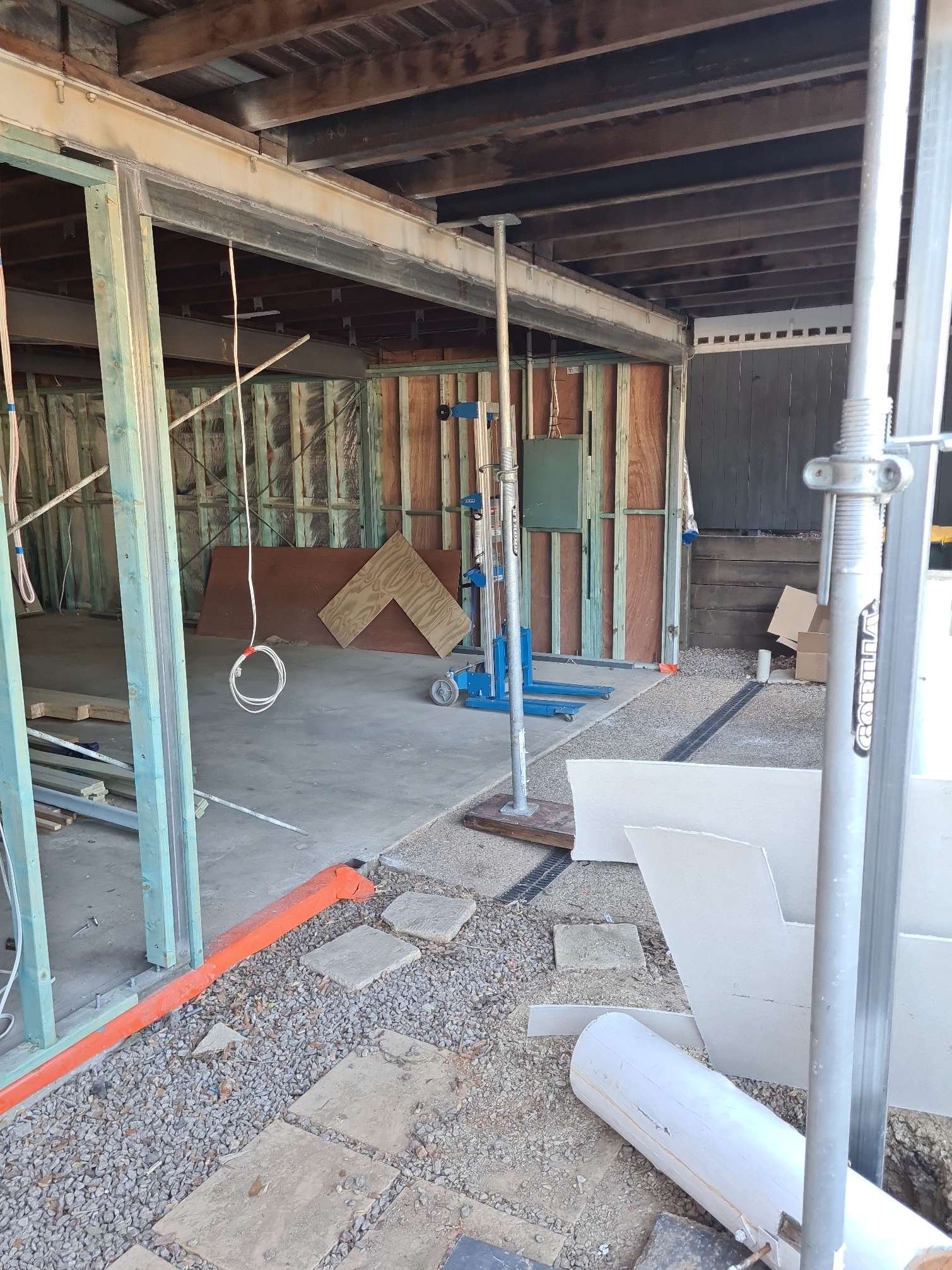 The initial phase involved the adaptation of the existing open-sided garage area. This transition required us to erect walls, effectively enclosing the space. This crucial step provided the foundation for realising the client's vision of a laundry area and spacious storage compartments. The seamless integration of these elements allowed us to convert a previously underutilised space into a harmonious blend of practicality and convenience.